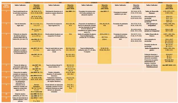Tabla 2 Cuadro de índices e indicadores de organismos de desarrollo social para Colombia, 2014-2018