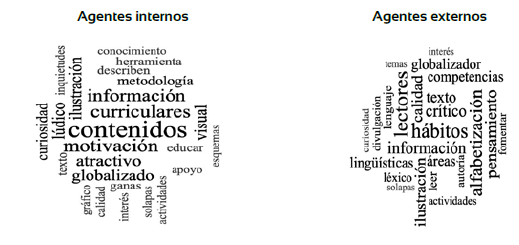 Los agentes internos ponen el foco en las posibilidades que ofrecen estos libros para generar motivación en el alumnado al estudiar los contenidos curriculares y desplegar estrategias de búsqueda de información. Sin embargo, para los agentes externos el epicentro está en el poder que estos libros tienen para crear hábitos lectores, desarrollar la alfabetización informacional y el pensamiento crítico y mejorar la comprensión lectora. No obstante, se registran numerosas similitudes en el discurso generado sobre los beneficios que los agentes atribuyen a estos libros (Véase tabla 4).