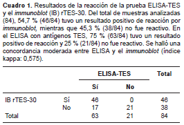 Evaluación serológica: comparación del immunoblot rTES-30 con ELISA (TES)