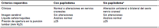 Cuadro 1 Criterios diagnósticos del síndrome de seudotumor cerebral