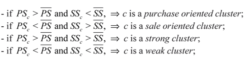 • Internal linkages: It classifies each cluster according to how important the cluster is to the industries belonging to it. Two coefficients are calculated in order to carry out this classification. First, the intra-clusters Purchase Share coefficient (PS) that measures the share of inter-industry purchases made by the cluster industries that are supplied by other industries within the cluster. The second measure, intra-cluster Sales Share coefficient (SS) that measures the share of inter-industry sales made by the cluster industries that are purchased by other industries within the cluster: