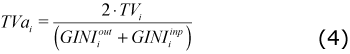 Where GINIouti measures how dispersed the outputs of industry i are; and measures how dispersed the inputs of industry i are.