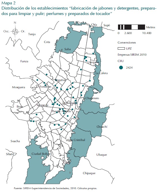 Para identificar los patrones de localización de las principales actividades económicas en la ciudad, se realizó el análisis a empresas que contaban con un total de activos o ingresos anuales iguales o superiores a veinte mil salarios mínimos legales mensuales (20.000 SMMVL); o aquellas empresas que disponían de activos o ingresos mensuales iguales o superiores a cinco mil salarios mínimos legales mensuales (5.000 SMMVL), pertenecientes a aquellos sectores económicos representativos de la economía bogotana durante el 2010.