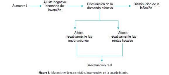 Cuando la autoridad monetaria incrementa la tasa de interés de intervención, los inversionistas se forman expectativas de incremento en la tasa de interés, y ajustan su demanda de inversión negativamente. La tasa de interés de mercado se incrementa gradualmente en respuesta a la señal del banco central. La inflación cae, por efecto de la menor demanda efectiva, tal como afirman Vargas et al. (2013).