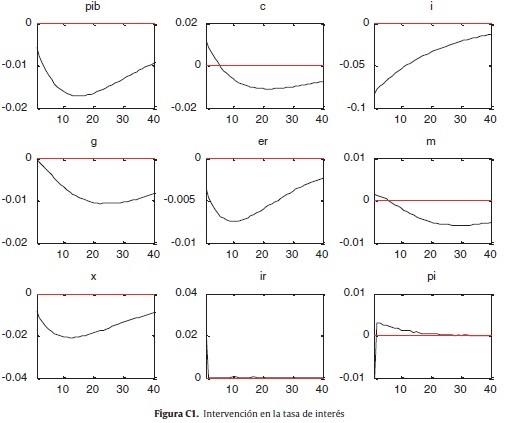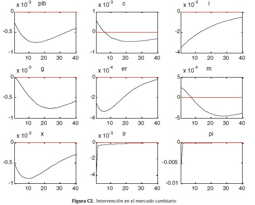 Estos resultados son importantes, porque se obtienen a partir de un modelo esencialmente neoclásico, en el que no se asumen inflexibilidad de precios y salarios, y en el que la no neutralidad del dinero depende básicamente de la formación de expectativas de los inversionistas y de los mecanismos de ajuste del mercado externo y del balance fiscal. Los efectos podrían ser mayores si se incorporasen otro tipo de inflexibilidades. Según estos resultados, se concluye que el banco central puede considerar la tasa de cambio, y específicamente la variación de las reservas internacionales, como uno de sus instrumentos relevantes a la hora de hacer política monetaria. En este sentido, el trabajo está acorde con las aportaciones de Ostry et al. (2012), en las que se afirma que en una economía con metas de inflación la intervención cambiaria es efectiva. Sin embargo, existen diferencias en cuanto a cómo opera la intervención puesto que la que se analiza en este trabajo es no esterilizada.