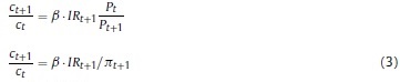 . parte de la utilidad de los individuos: - De la ecuación 3(1= β · ir) se calcula β (factor de descuento de los hogares) derivado de la ecuación de Euler expresada en términos de la tasa de interés real.