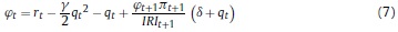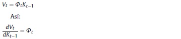 Aplicando el principio de optimalidad de Bellman, se deduce la tasa de inversión óptima (q) en términos de la productividad real del capital (φ), la tasa bruta de inflación y la tasa bruta de interés: