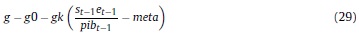 Donde g0, gk y meta son el gasto público per cápita, el parámetro de ajuste del gasto público y la meta de endeudamiento público externo.