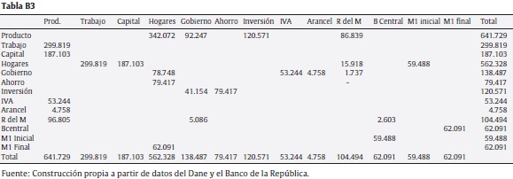 Asumiendo pues que los datos de 2010 reflejan las condiciones actuales de funcionamiento de la economía, la estrategia de calibración consiste en hacer que el modelo replique los flujos observados en dicho año, tal y como se resumen en la matriz de contabilidad social que sintetiza dichos flujos (tabla B3).