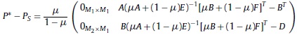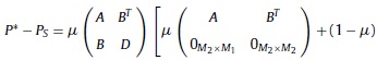 Donde Ξ = βΣΨβΤ+ Σξ,es una matriz M x M simétrica, no negativa y definida positiva. Una manera intuitiva de visualizar esta matriz es considerar el mercado de activos compuesto de 2 segmentos M = M1 + M2, así, S puede escribirse como una matriz en bloques:
