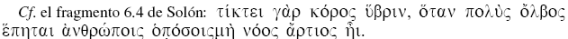 13 A.M. González de Tobia (2004) n. 35. La conexión entre ólbos, kóros (saciedad, hartazgo) y hýbris, señala la autora, ya puede rastrearse en Homero (Od. 1.368 y 15.329).