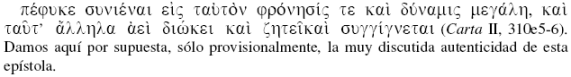 31 P. Donini (1988), pp. 5-16, puso en evidencia con mucha agudeza la necesidad de comprender el vínculo entre la introducción del Timeo y el resto del diálogo. Toda interpretación del texto –escribe Donini— "debe resolver un problema preliminar, y de hecho siempre lo resuelve, lo quiera, lo sepa o no. Porque hacer como si la conversación introductoria no existiese y concentrarse enseguida en el discurso de Timeo es un cierto modo –incluso muy neto—de resolverlo: suponiendo implícitamente que no hay ninguna relación entre ambas partes del diálogo, o por lo menos que no tiene importancia buscarla". Mi argumento aquí está plenamente en deuda con ese valioso trabajo de Donini (aunque algunas de las premisas y conclusiones del trabajo de Donini no van a ser suscriptas aquí; puntualmente: la desvalorización general de las palabras de Critias, la evaluación del papel de Egipto en el imaginario platónico y el tipo de "verosimilitud" de los relatos sobre lo divino).