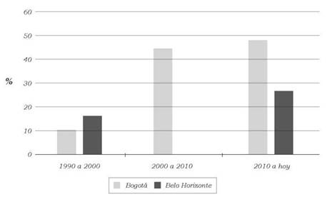 Figura 4 Participación de las identidades móviles en los IPP de Bogotá y Belo Horizonte