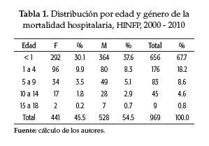 Infant mortality in a university pediatric hospital in Colombia, 2000 - 2010