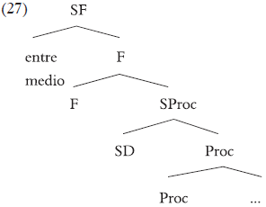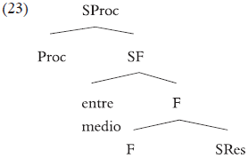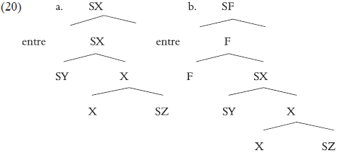 Aunque en principio nuestro análisis es neutral con respecto a las dos alternativas, veremos en §4 qué razones relacionadas con la lexicalización de la estructura hacen preferible la versión (20b).