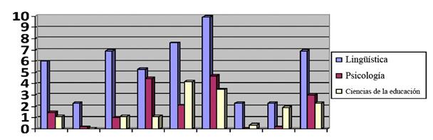 Hemos calculado la proporción de pronombres sujeto que remiten al autor en las diferentes disciplinas. Los resultados que aparecen en la tabla 2 son bastante contrastados. En general, los pronombres sujeto que remiten al autor no son muy numerosos en los escritos científicos examinados, lo que apoyaría la tesis de que los escritos científicos son un género con una fuerte discreción enunciativa, donde la voz del autor no se pone de relieve (como máximo, en lingüística, 13% de las ocurrencias léxicas). Sin embargo, se observan diferencias remarcables entre disciplinas de las ciencias humanas, lo que pone mucho en evidencia la diversidad en el seno de las ciencias conocidas como «blandas», diversidad que hay que tener en cuenta con el fin de evitar las presentaciones estereotipadas o reductoras. Los lingüistas son los investigadores que más expresan su voz, en particular cuando hablan solamente en su nombre (pronombres exclusivamente de autores). Para los demás usos (inclusivos y exclusivos), los lingüistas sobrepasan a los psicólogos y a los especialistas de las ciencias de la educación, pero en una mínima proporción. Estos resultados confirman entonces de cualquier manera los de Fløttum et al. (2006) quienes señalaban una proporción mucho más fuerte de este tipo de pronombres en lingüística que en economía y que en medicina. Además, como era de esperarse, los psicólogos usan poco el pronombre de primera persona; y las prácticas de escritura parecen, desde este punto de vista, cercanas a las observadas por Fløttum et al. (2006) para los médicos. Por el uso del pronombre, también es posible que haya más diferencias entre la lingüística y la psicología, que entre esta última disciplina y la medicina.16 Los resultados en ciencias de la educación parecen más sorprendentes: se acercan fuertemente a la psicología, aunque los métodos expuestos no son los de prácticas experimentales. Sin embargo, los artículos de nuestro corpus son muy diversos: algunos se acercan más a la filosofía (por ejemplo: «Sumisión y subjetivación: reflexiones sobre el uso de Foucault en educación»), mientras que otros utilizan las técnicas estadísticas y la encuesta sociológica (por ejemplo, «¿Se puede concluir acerca de los efectos de repetición?»).