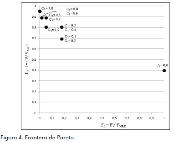 Para cada valor de C1 el diámetro óptimo es el que minimiza la función f. Los resultados representan la frontera de Pareto (figura 4).