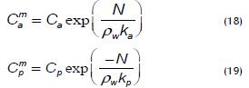 La presión de vapor de agua a la entrada de los poros tanto de la solución diluida como de la salmuera está relacionada con la temperatura y actividad prevaleciente en la interfaz de la membrana; esta condición es muy útil al momento de calcular la permeabilidad (K), para lo cual se pueden usar las siguientes expresiones: