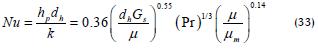 El cálculo del coeficiente (hp) al exterior de las fibras ha sido poco estudiado para la evaporación osmótica debido a las complejidades geométricas e hidrodinámicas de los módulos utilizados en esta operación; algunos autores (Gryta et al., 2005) sugieren usar el modelo de Kern (33) que se aplica para intercambiadores de calor de coraza y tubos.