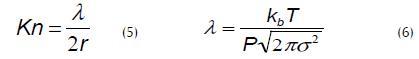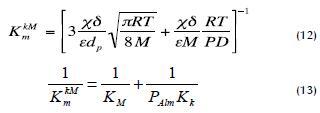 The two phenomena become combined in the transition region, 0.01 < Kn < 10, and the best option in this case is to use a mixed model (12) having type permeability (13) which includes the term PAlm that takes into account the effect of air in the pores (Chen et al., 2009):