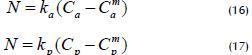 As conditions at the interface are not always available, a more complete representation of the process is given by equation (2), where the overall coefficient K integrates multiple resistance to mass transfer (Figure 1b).
