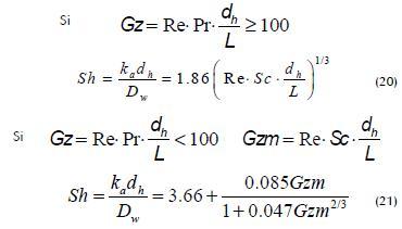 Semi-empirical models can be applied to predict coefficient ka for hollow fibre modules for which the power flow inside the fibre can be likened to that presented in a pipe. The Sieder-Tate equation and its analogues for mass transfer, equations (20) and (21), can thus be successfully applied (Martínez-Díez et al., 2000):