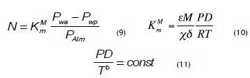 Water vapour pressure at the entrance to the pores regarding both dilute solution and brine is related to temperature and prevailing activity in the membrane interface; this condition is very useful for calculating permeability (K), for which the following expressions can be used: