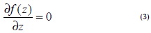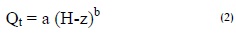 The methodology proposed by Leon et al., (2006) was used for determining the depth of zero flow (Hz). This method consists of minimising root mean square error (RMSE) between the flow estimated by the hydrological model and a flow rate estimated by Equation 2: for a given value of z, coefficients a and b were estimated by linear regression (Ln (Q), Ln (Hz)). By exploring a range of possibilities of z it was possible to construct RMSE (z) = f (z). All the possible range of values which might have had z was explored in 0.01 m increments. The value of z that best represented the altitude of zero effective flow could be expressed as shown in Equation 3.