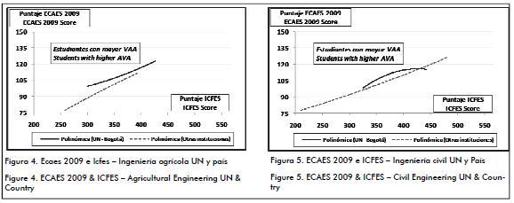 Likewise, students' AVA has been shown for civil, electrical, electronic, chemical, industrial, systems and mechanical engineering programmes at Universidad Nacional in Bogotá in relation to other programmes throughout Colombia (see Figures 2 to 11) using inputgenerated (higher education admission test) and outputgenerated (ECAES 2009 test data) tendency lines.