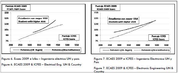 Agricultural, electrical, electronic, chemical and systems engineering programmes at the Universidad Nacional in Bogotá had greater AVA than the group of other programmes across the country for the whole generated function domain. Civil, industrial and mechanical engineering programmes had two opposing patterns; they had greater academic added value than the group of other programmes across the country within the low performance area where the students presented greater learning difficulty but had lower AVA within the high performance area.