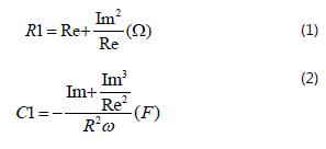 Sand electrical parameters were computed from the results of Figures 11 and 12. Impedance was represented as Re+jIm and the equivalent resistance and capacitance were calculated using (1) and (2):