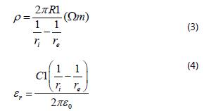 where ri and re were the inner and outer radius, respectively.Figures 13 and 14 show impulse test resistivity and permittivity variation, respectively.