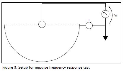 Current and voltage in the impulse frequency response test were measured directly through current and voltage probes (described above). The outer sphere was directly connected to earth; the previous R2/C2 branch was thus not considered in the test.