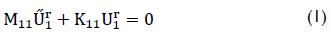 where M11 is a mass matrix corresponding to non-restricted degrees of freedom "n", K11 is a stiffness matrix corresponding to non-restricted degrees of freedom "n", U1r is a vector of relative displacement and Ü1r is a vector of relative acceleration.
