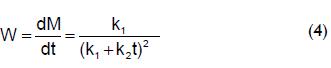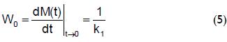 In evaluating W at the beginning of the process (W0), t 0, W = W0, expression (5) shows W0 (the initial rate of hydration), as the reciprocal of k1: