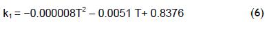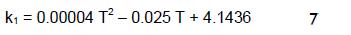 Me values greater than 100%, for 40°C and 80°C, reflected grain components' outflow facility. In accordance with other studies (Bayram et al., 2004), the effect of temperature on grain was actually softening, thereby leading to easy migration of solids (not necessarily initially counted as being water-soluble) outward from the seed in addition to soluble carbohydrates, leaving minerals, polysaccharides present in the fibre and pigments. This has been observed in other seeds by other researchers (Vijayakumari et al., 2007, 1998). A polynomial function (equation 7) between absolute temperature and k1 would thus be given by: