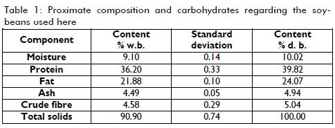 Table 1 presents the results obtained for the soybeans' proximate composition, expressed on a wet and dry basis.