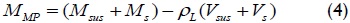 where Msus and Vsus are the subjection systems' mass and reference object volume and ρL is liquid density.