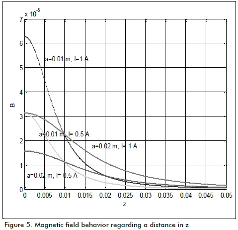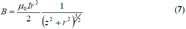 Z is the vertical distance above the z axis from the base of the coil and r is coil radius. Figure 5 gives a simulation of the field's behaviour with different currents according to equation (7).