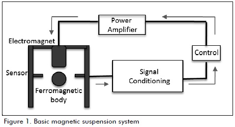 The magnetic suspension system has been studied and developed by authors such as Hurley, Ziehlmann and Mizuno. The common factor in their works is that they have followed a basic type of system consisting of an electromagnet, a ferromagnetic body, a position detection system and a closed loop control, as shown in Figure 1 (Hurley, 1997; Ziehlmann, 2000).