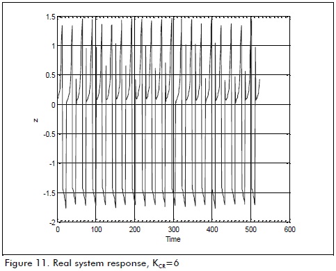 A value of 6 and 25 ms Pcr was obtained by varying Kp until obtaining a response with sustained oscillations (like that shown in Figure 11). Kcr was then calculated by applying the Ziegler-Nichols rules [Ogata, 2002] and Kpr= 3.6 and Td= 3.125 x 10-5 were deduced. Plant stability was around 0.03 seconds by applying constants Kp, Kd and Kito the control system (Figure 12).