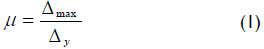 where Δmax/Δy is μ, and Δy/Δd from Figure 1b is: