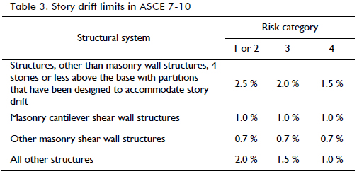 ASCE 7-10 also provides allowable story drift to be compared to true maximum inelastic drift. As shown in Table 3, allowable drift depends on a building's importance.