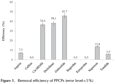 It is difficult to say that the reported efficiencies are typical for the system assessed, since results in different investigations show a high variation in the removal percentages in conventional treatment systems. Such uncertainty is attributed to the variability in the rate of PPCPs consumption, the metabolism of the consumers, the wastewater generation rates, the persistence in the environment of such substances, and the efficiency in the treatment processes (Petrovic et al., 2009; Jelic et al., 2012).