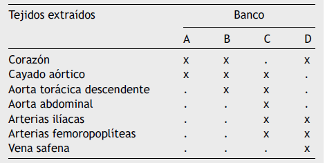 Todas las instituciones pueden obtener sus tejidos en el quirófano; solamente en un caso se tiene adicionalmente validada la extracción en una unidad forense. En cuanto al personal que realiza la extracción, usualmente el cirujano cardiovascular es el encargado; éste puede estar asociado a un grupo quirúrgico que efectuá el procedimiento rutinariamente y en otros es contactado previo a la intervención.