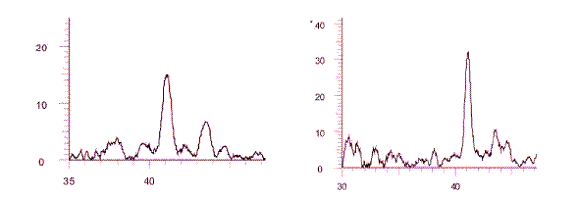 Figura 2 Difractogramas para relación de presión de 0,05 (izq.) y 0,1 (der.)