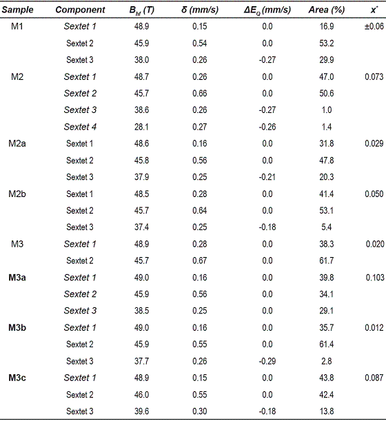 Table 2 Hyperfine Parameters of synthetized magnetites