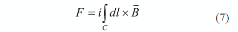 El torque generado por estas máquinas se calcula utilizando la forma diferencial de la fuerza F de Lorentz [N] para un hilo de corriente i[A], ecuación (6),