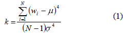 According to figure 3, it is noticed that the histograms have similar shape. Since the kurtosis reflects the shape of a distribution, it is expected that the kurtosis of the above histograms is similar. The kurtosis is obtained as follows: