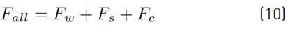 The total force is housed in the structure F all [N]. It is calculated in Equation (10), as the sum of the forces due to the structure weight F W , to the strength due to the spindle motor F s , and strength cutting tool F C work.